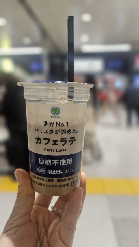넥스 매표소 근처에 패밀리마트가 있어서 무당 카페라떼 하나 사서 목 좀 축이고.