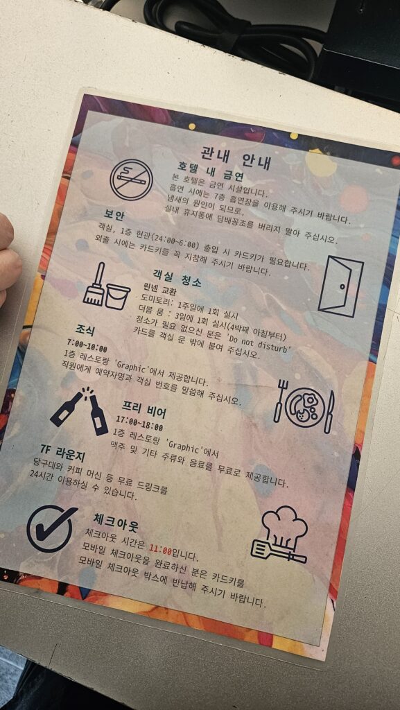 체크인 할 때 한국어 안내판도 보여주신다.
