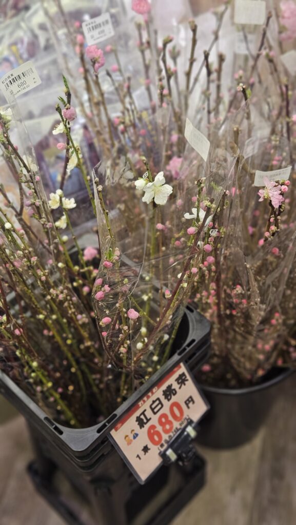 꽃다발이 아니라 꽃가지 다발을 파는게 신기했는데, 찾아보니 복숭아꽃.