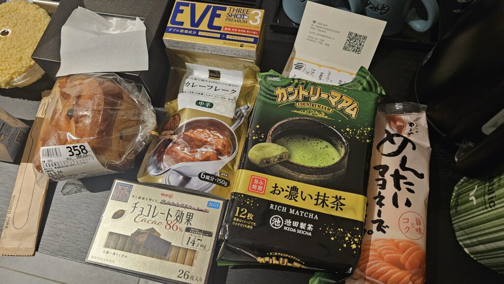 시부야역까지 80분 걸리니까 기차 안에서 먹을 첫 끼니도 사서 탑승.