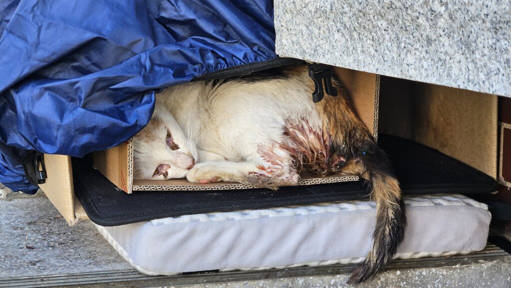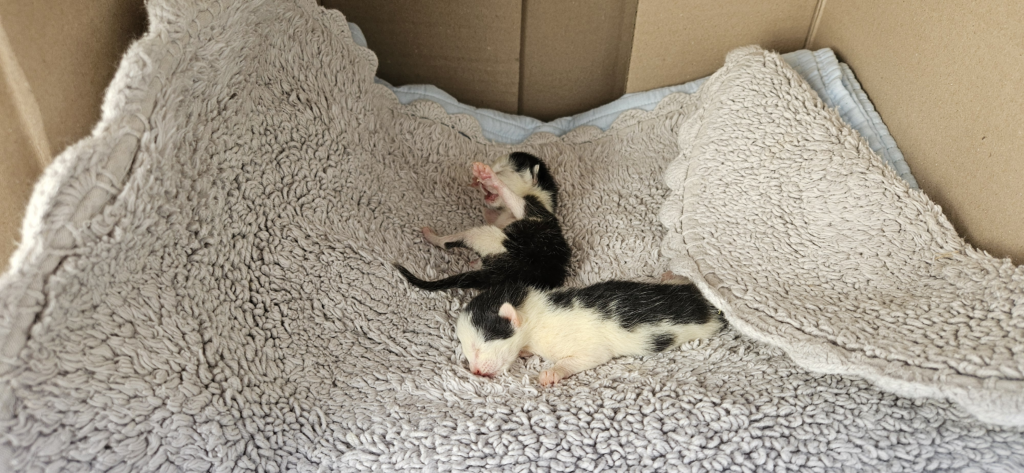 힘 없이 축 처진 못난이와 죽은 새끼 고양이 한 마리가 박스 안에 있는 걸 보게 됐다.