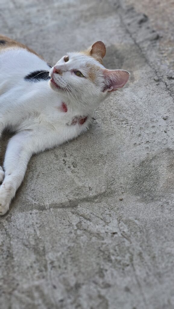 싸운건지 어쩐건지 목 둘레에 상처가 깊어 보였다.