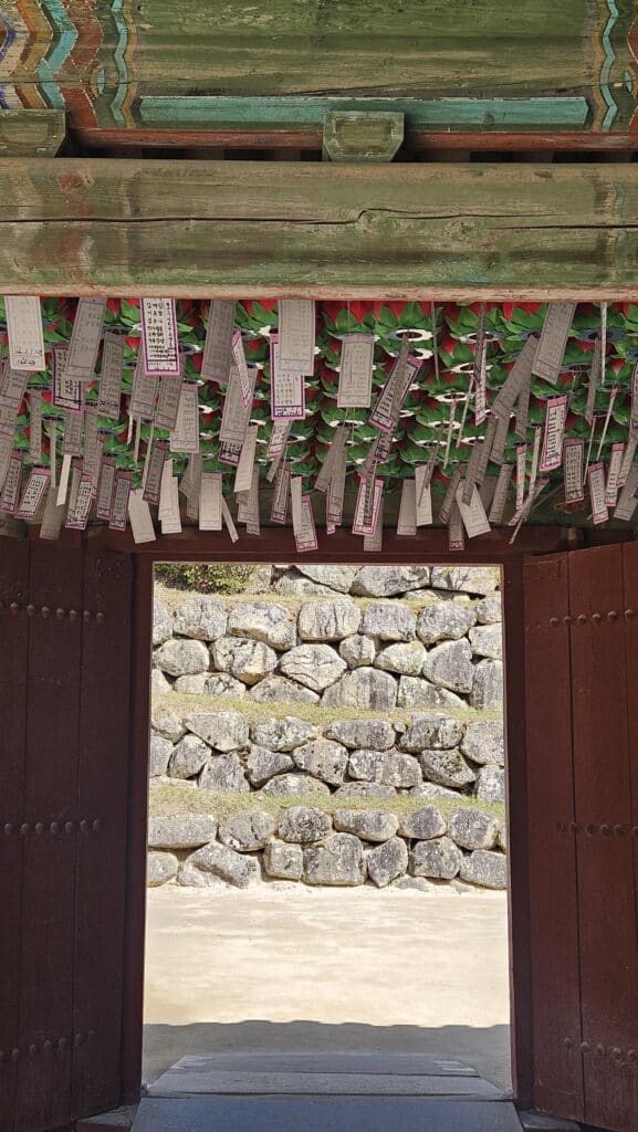 불국사 곳곳에 각자의 소망을 담은 연등이 걸려있다.