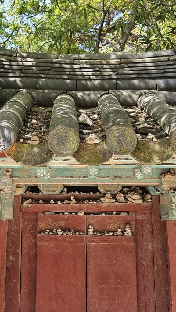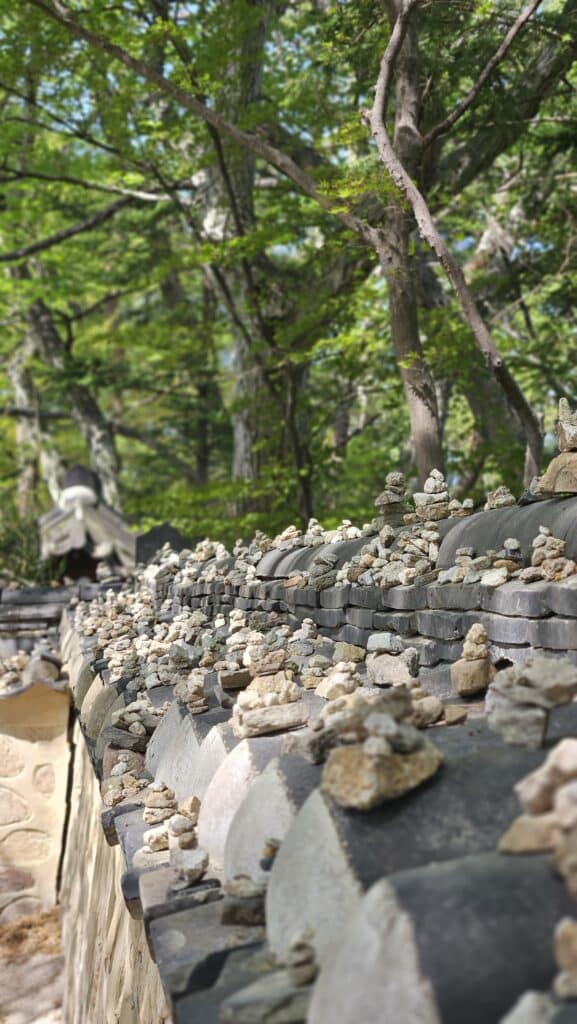 불국사를 방문했던 수많은 이들의 소망이 얹혀진 작은 돌탑들을 만난다.