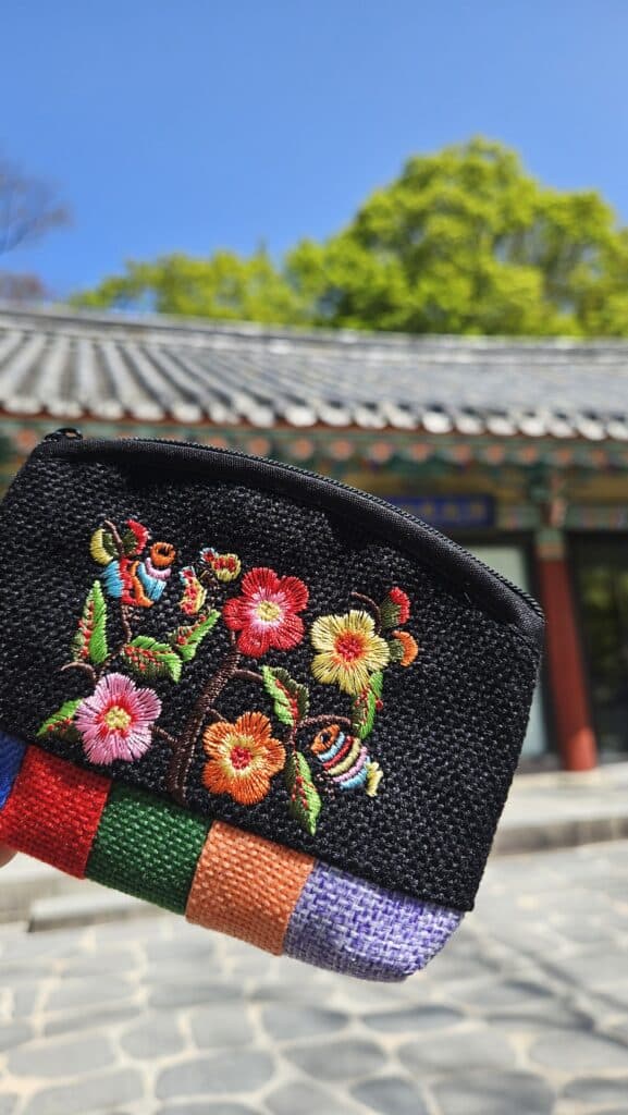 알록달록 자수가 놓인 동전지갑이 단돈 오천 원.