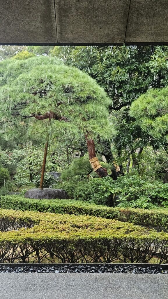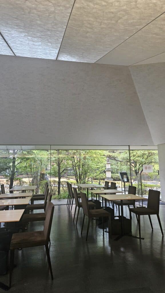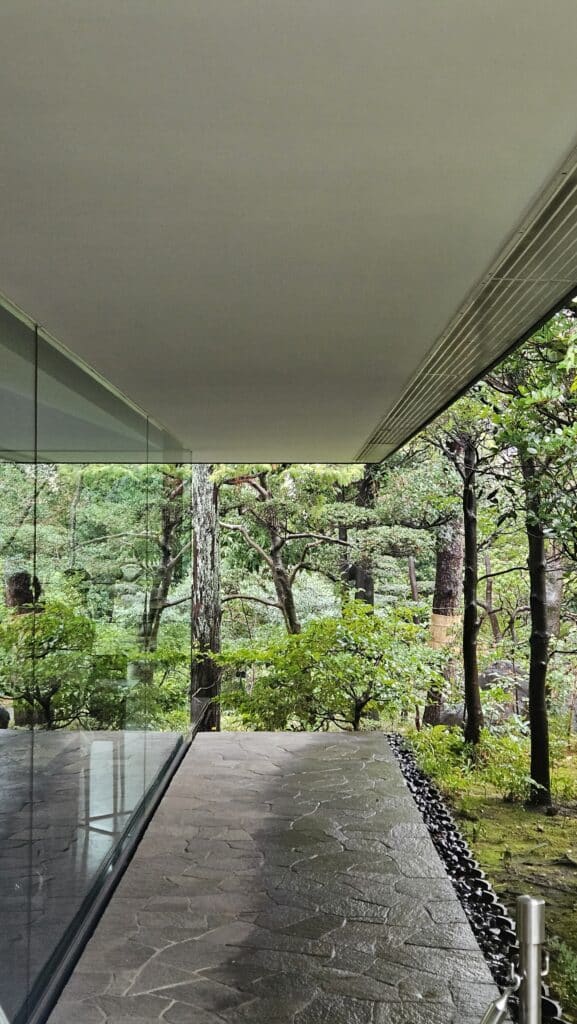 미술관으로 들어오니 구마 겐고의 처마에서 네즈 가이치로의 정원으로 떨어지는 비가 더 낭만적으로 보인다.