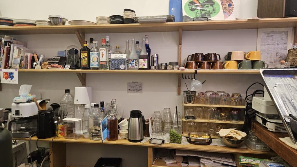 카페, 식당, 테이블에 사람이 꽤 많은데 소란스럽지 않고 조용한 분위기.