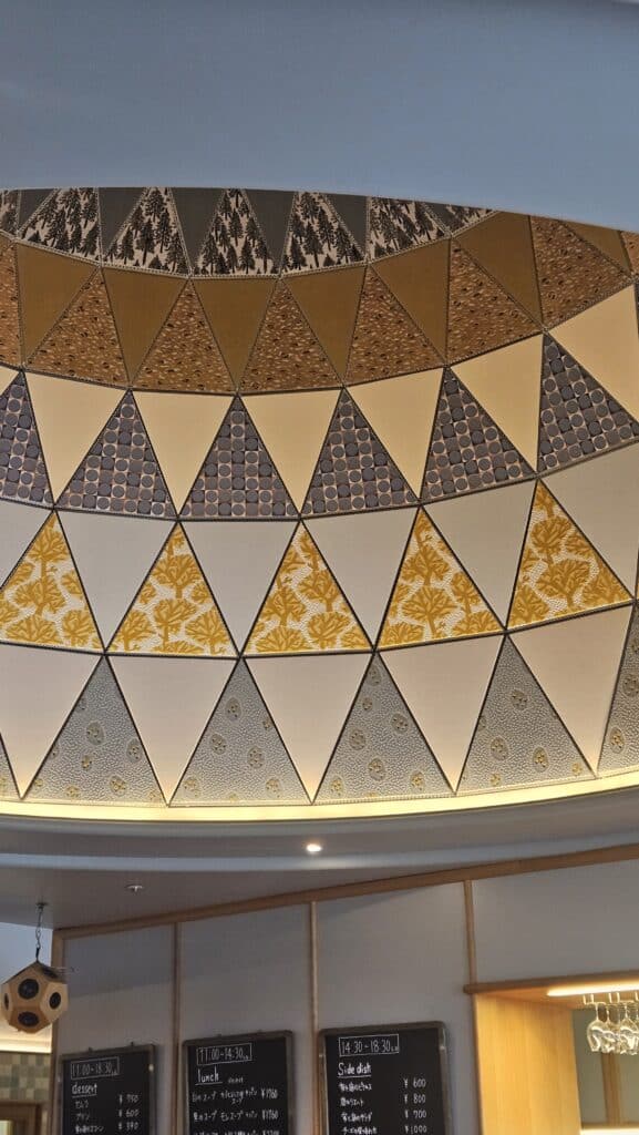 돔천장 장식과 접시의 패턴이 예사롭지 않다.