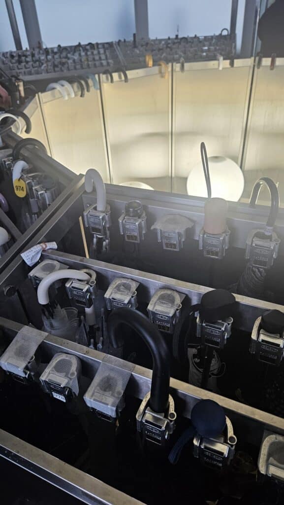 우산꽂이에도 진심인 것 같아서, 목욕탕 락커처럼 귀여운 열쇠가 있는 우산 락커.