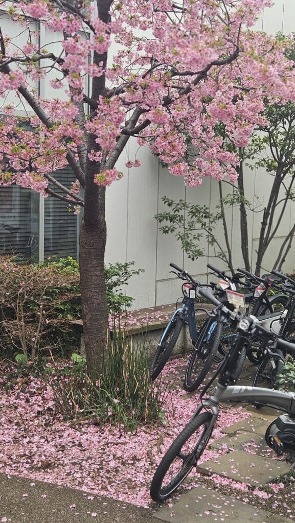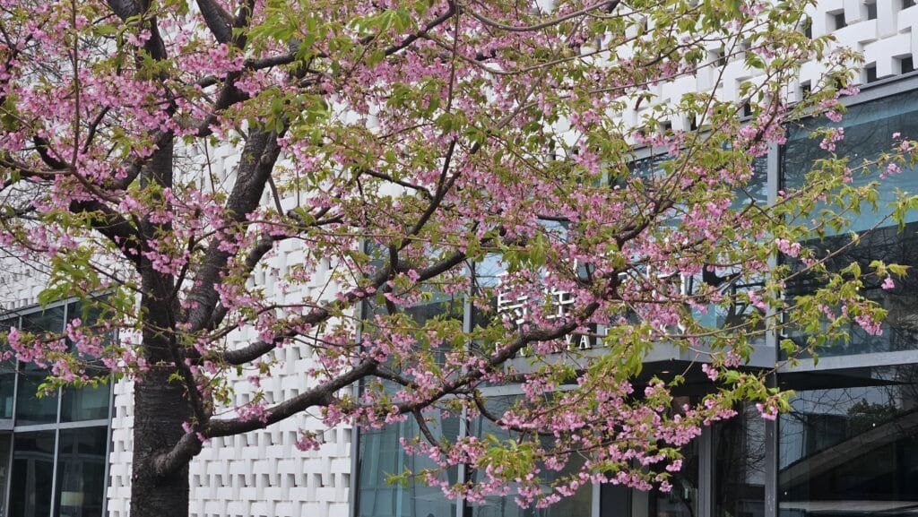 츠타야서점 TSUTAYA 오픈 시간 오전 9시에 맞춰 도착하니 만개한 벚나무가 반겨준다.