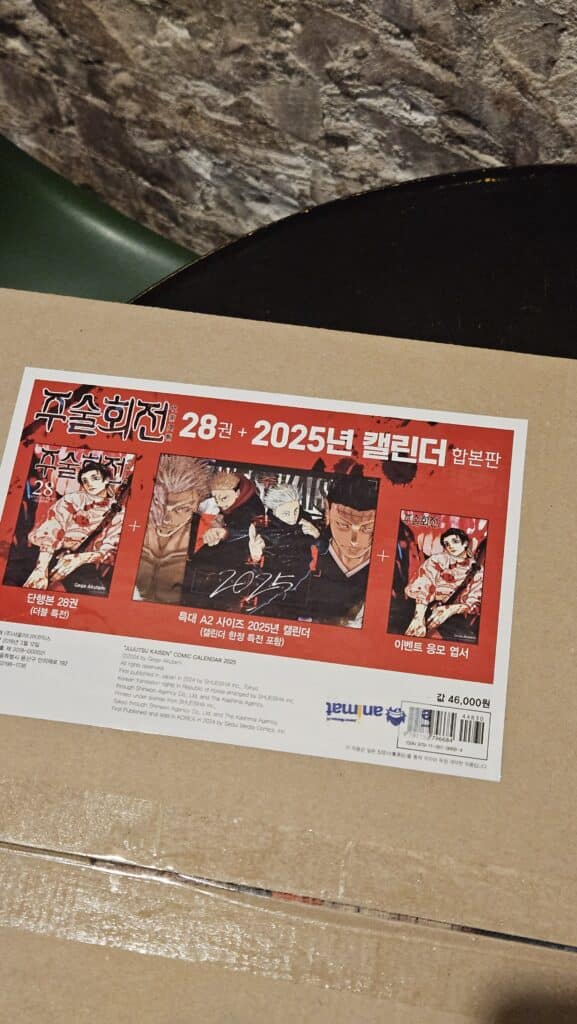 주술회전 캘린더. 작년 버전이라 그나마 가격이 이 정도.